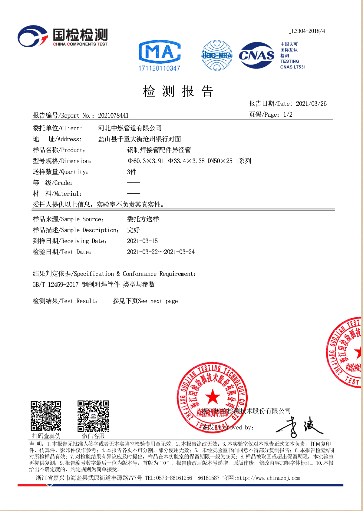 鋼製焊接管配件異徑管(大小頭)_檢測報告_三門峽