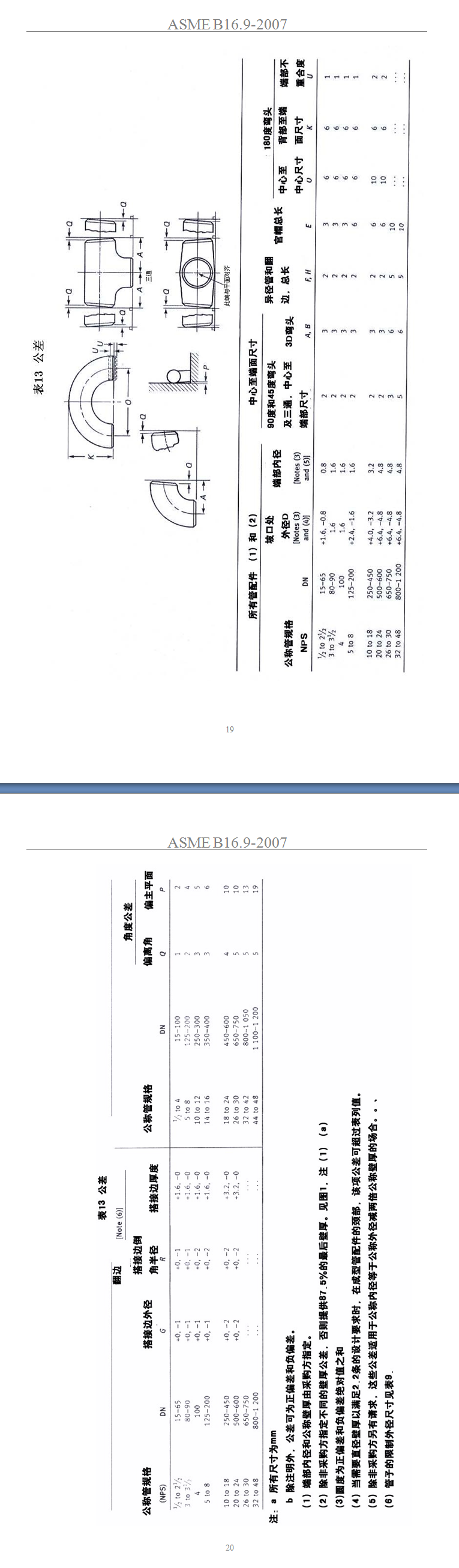 ASME 鍋爐及壓力容器規範第Ⅱ卷中所列出的相應標準。術語“鍛軋”意指管配件是由公稱管、管子、鋼板或鍛件製造的。由鍛坯製造的管配件可隻是按製造廠和采購方的協議供貨。注意的管配件並不需要符合第 7 節表麵外形的要求。