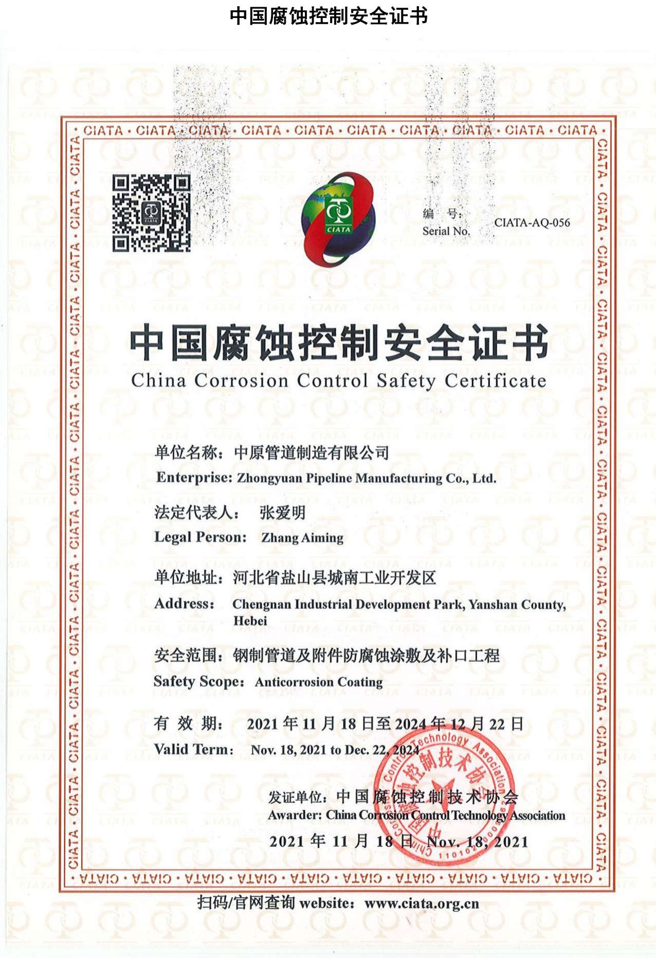 公司自2000年以來先後通過ISO9001國際質量管理體係認證,ISO14001國際環境管理體係認證,GB/T28001職業健康安全管理體係認證和中國石油天然氣集團公司(HSE)健康、安全與環境管理體係認證,美國石油學會API Spec Q1體係認證、API Spec 5L樱花草黄色电影認證,歐盟鍋爐壓力容器安全認證(PED),並獲得特種設備製造許可證(壓力管道)等體係認證和許可證書,2011年5月成為中國石油天然氣集團公司一級物資供應商,2012年成為中國國電集團公司和中國華電集團公司集團級合格供應商,2014年3月成為中國石油化工集團公司合格供應商,2015年12月公司榮獲中國防腐蝕施工壹級資質證書和中國防腐蝕安全證書,2017年3月“世興牌給水用環氧粉末複合鋼管”和“世興牌給水用液體環氧塗料複合鋼管”均獲得河北省國產涉及飲用水衛生安全樱花草黄色电影衛生許可批件。