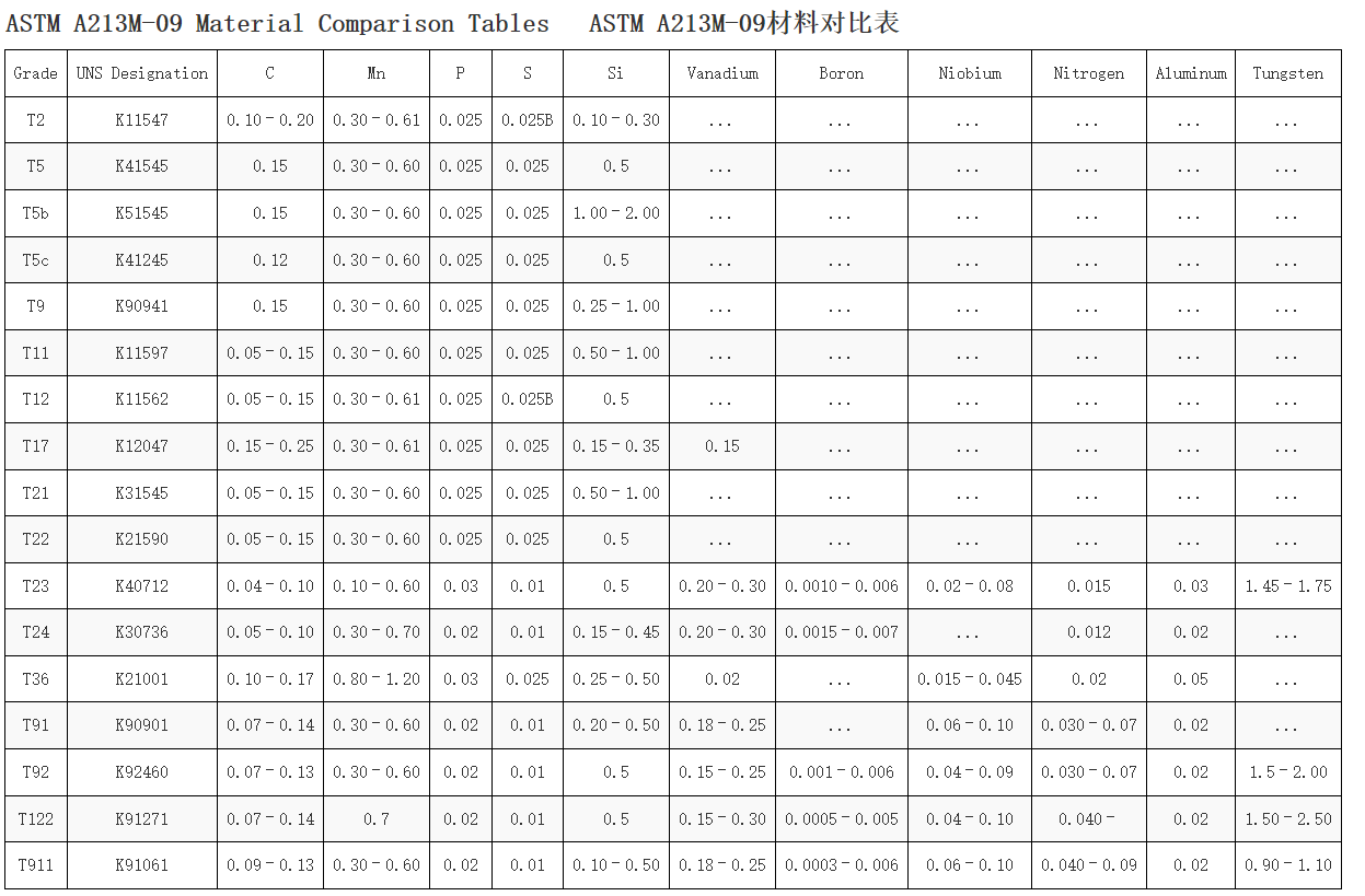 ASTM A213/A213M無縫鐵素體和奧氏體合金鋼鍋爐、過熱器和換熱器管標準規範