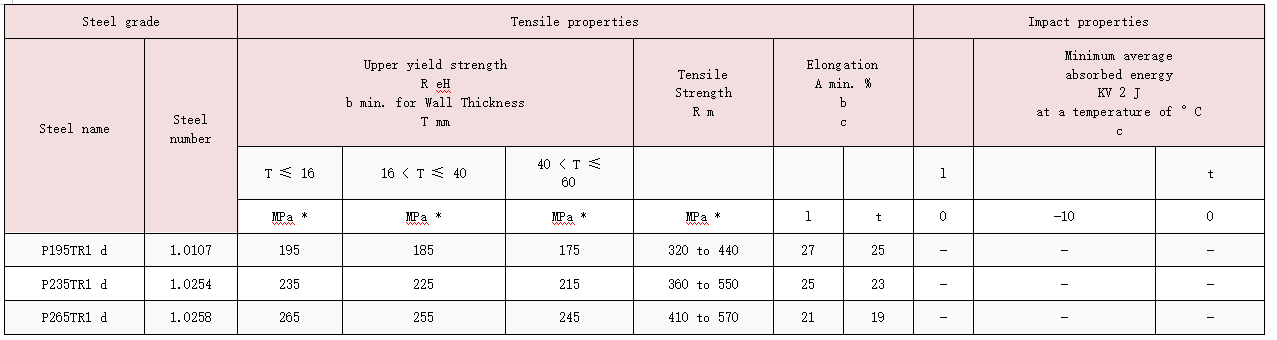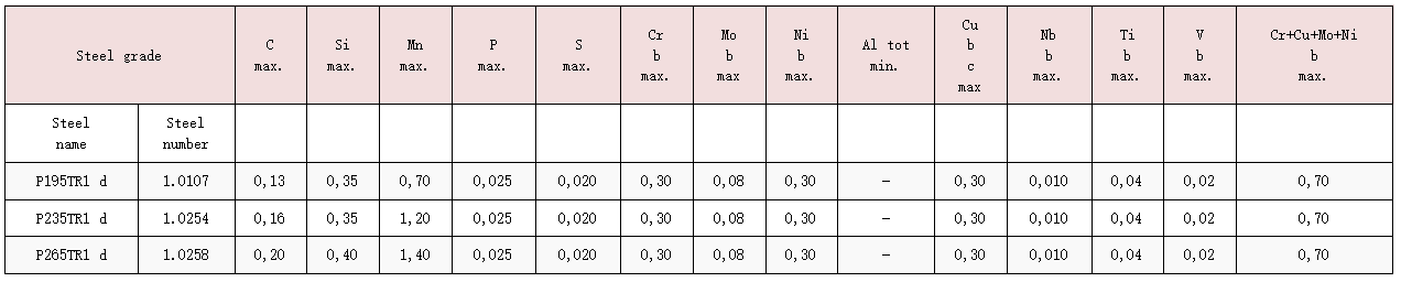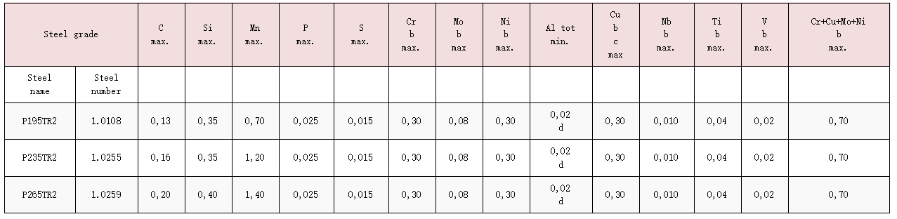 EN 10216是一個標準,涵蓋了P235TR2級鋼,非常適合壓力應用。此外,歐洲標準EN 10216-1規定了兩種質量鋼的技術交付條件,即EN 10216-1 p235tr1和TR2。