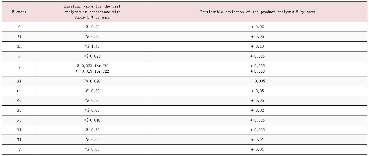 Table 4 specifies the permissible deviations of the product analysis from the specified limits on cast analysis given in Table 2 and Table 3.