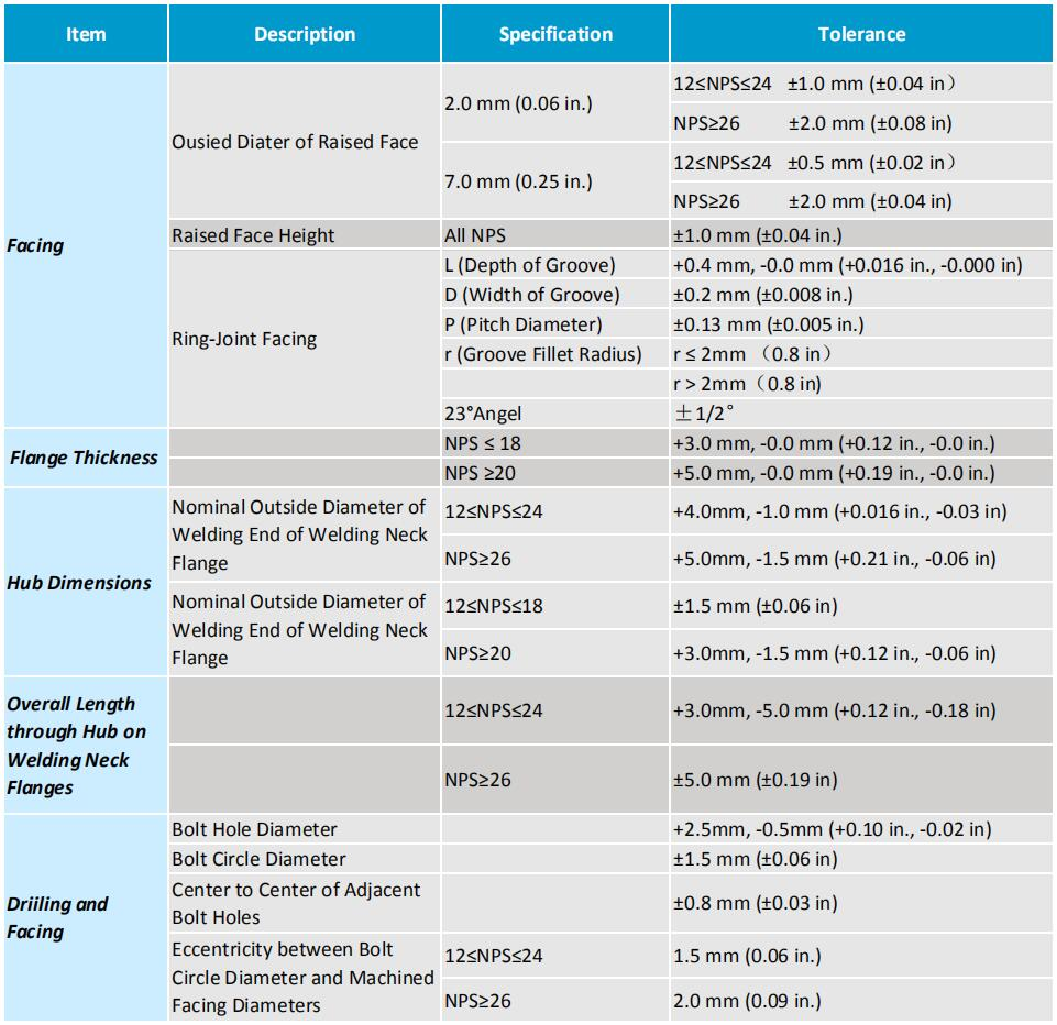 本標準中NPS 10及以下法蘭的尺寸和公差要求參見ASME B16.5