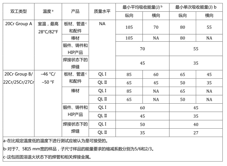 雙相不鏽鋼鐵素體驗收範圍值