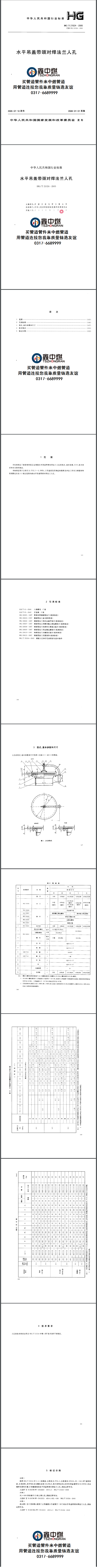 HG/T21524-2005 水平吊蓋帶頸對焊法蘭人孔 標準: