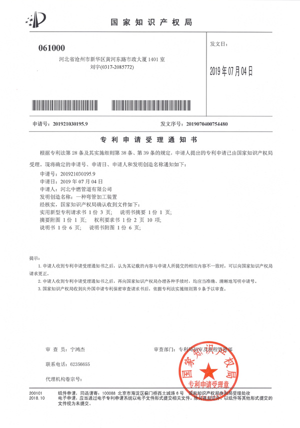 “一種防腐鋼管噴塗裝置”專利申請受理通知書