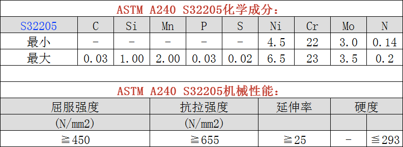 ASTM A240/A240M S32205化學及機械性能分析: