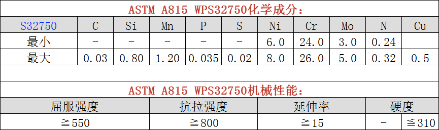 ASTM A815/A815M WPS32750化學及機械性能分析: