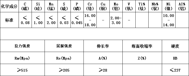 常用牌號有:304/0Cr18Ni9/1.4301/S30408、304L/00Cr19Ni10/1.4306/S30403、316/0Cr17Ni14Mo2/1.4401/S31603、316L/00Cr17Ni14Mo2/S31608、321/0Cr18Ni10Ti/1.4541、316Ti/0Cr18Ni12Mo2Ti/1.4571、317L/00Cr19Ni13Mo3/1.44438、310S/0Cr25Ni20/1.4845、UNS S31803/Duplex 2205/1.4462等。
